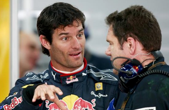 Mark Webber ha sido el más rápido en la primera jornada de entrenamientos libres del GP de Corea, que se disputa en el nuevo circuito de Yeongam. En la imagen, el piloto australiano conversa con un ingeniero de la escudería Red Bull.