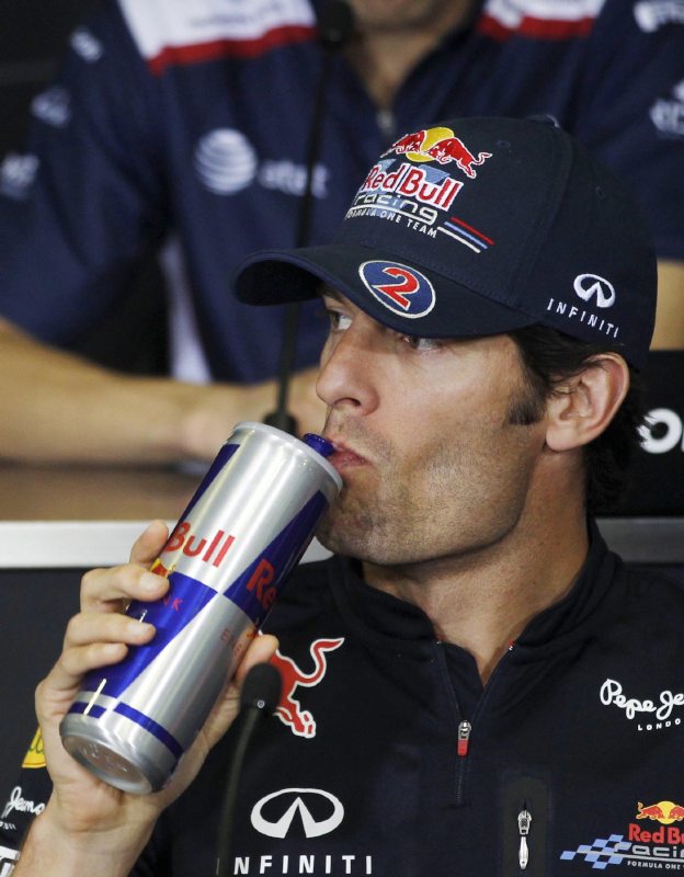 Mark Webber (Red Bull) ha marcado el mejor tiempo en la primera sesión de entrenamientos libres. En la imagen, el piloto australiano consume una bebida energética de la marca a la que representa.