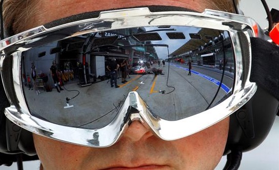El coche del alemán rodando sobre el circuito de Malasia durante la carrera.