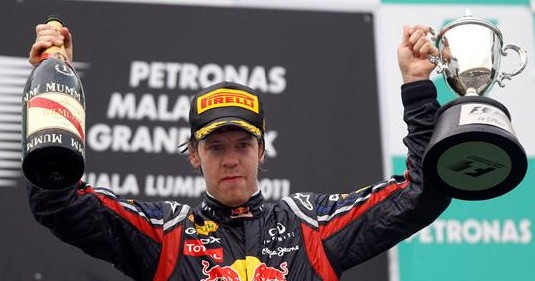 Sebastian Vettel celebra su victoria en el Gran Premio de Malasia.