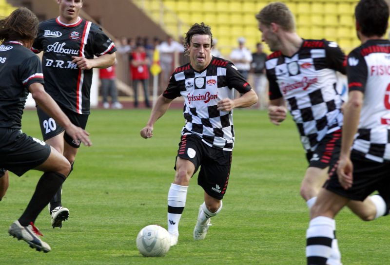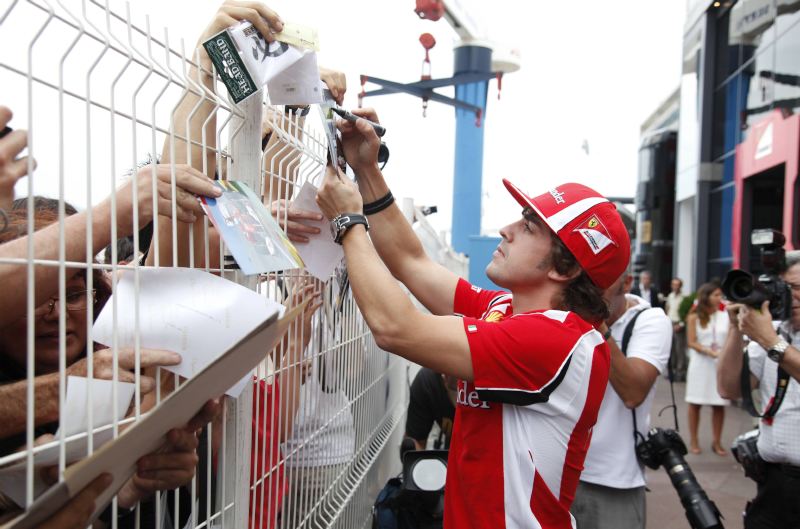 Fernando Alonso ha sido segundo en la primera sesión de entrenamientos libres del Gran Premio de Mónaco. En la imagen, el piloto español de Ferrari firma autógrafos a un grupo de aficionados.