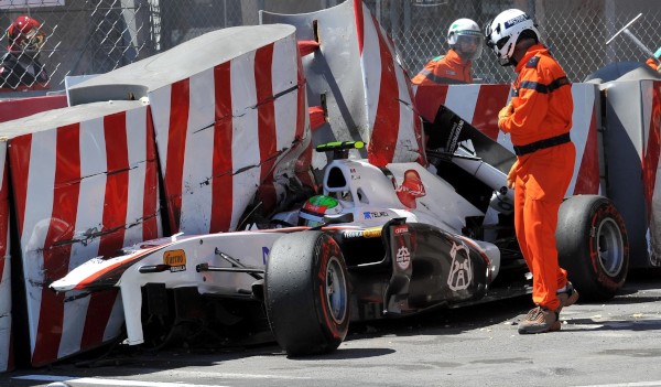 Así quedó el coche de Vitantonio Liuzzi, otro de los accidentados de este sábado.