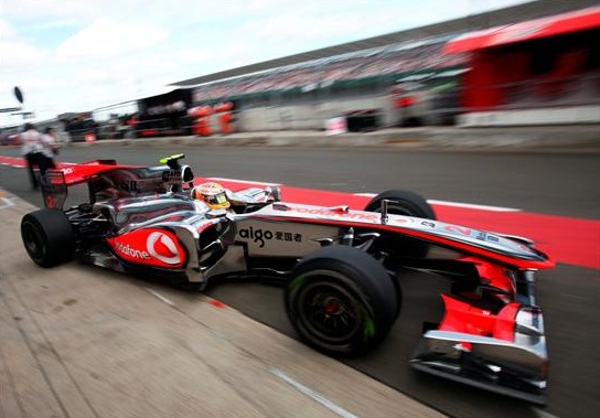 El piloto británico Lewis Hamilton (McLaren Mercedes) participa en la tercera sesión de entrenamientos libres del Gran Premio de Gran Bretaña.