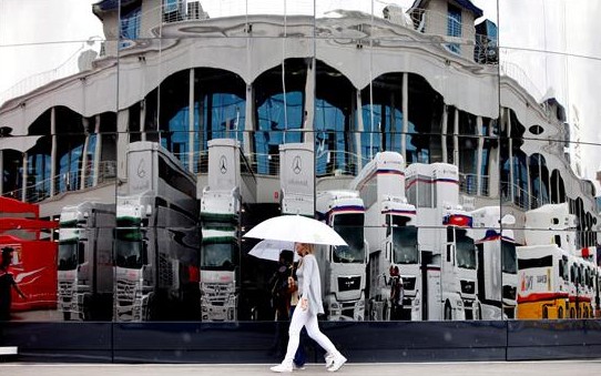 Una mujer pasa delante del "motorhome" de la escudería McLaren Mercedes. (EFE)