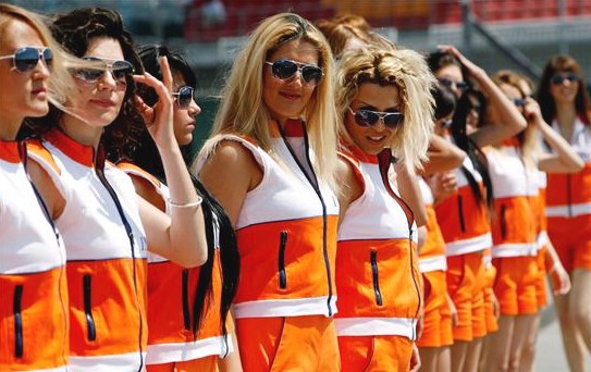 Las chicas de la parrilla de salida posan en la pista tras los entrenamientos del Gran Premio de Turquía. (EFE)
