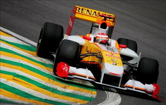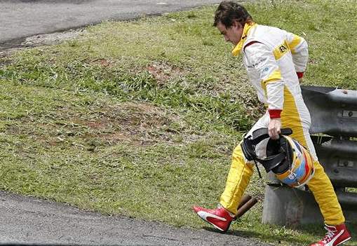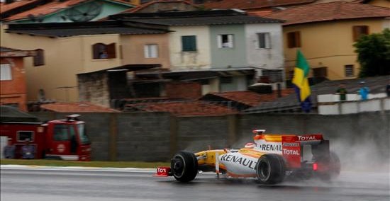 El piloto español Fernando Alonso de la escudería Renault F1 abandona la pista de Interlagos. (EFE)