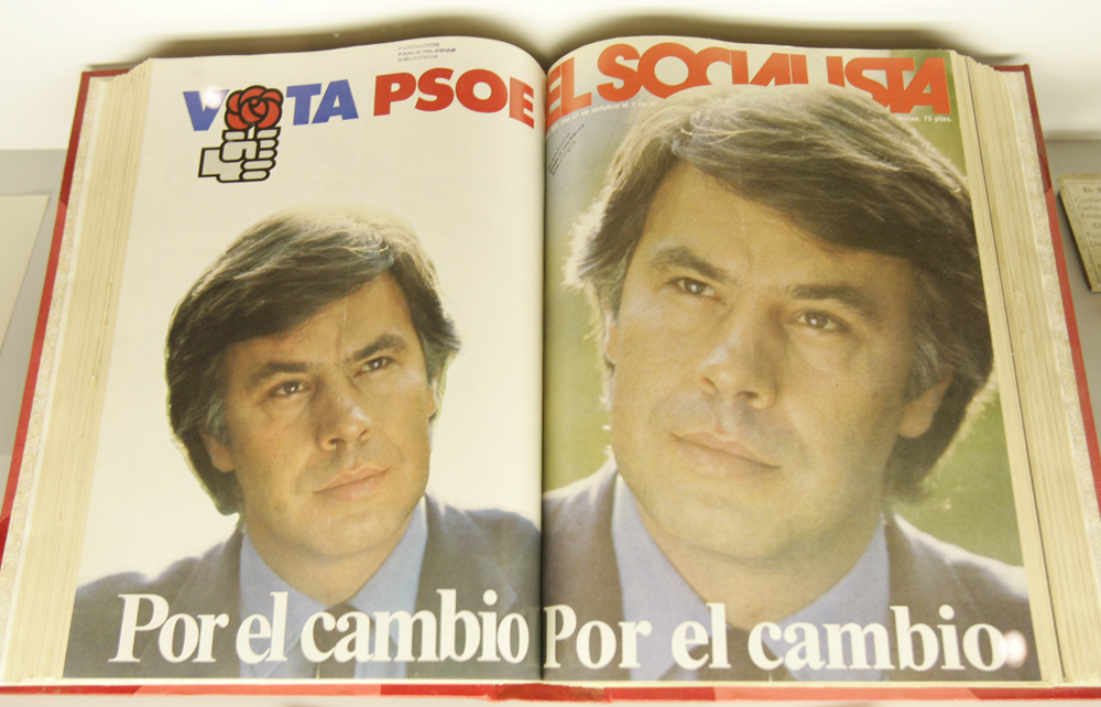 También se exhiben carteles electorales, como el de Felipe González en 1982, con el ya mítico 'Por el cambio'.