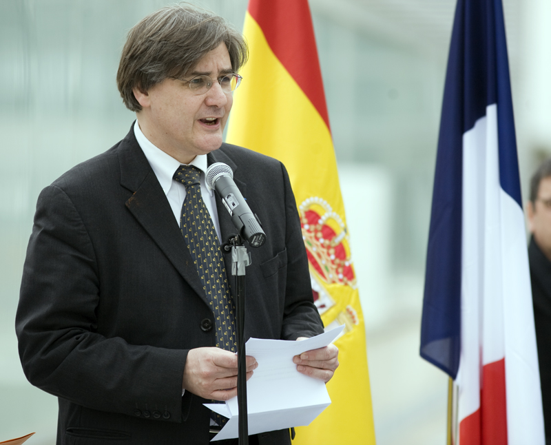 Cayetano González pronuncia su discurso junto a Guillaume Denoix.