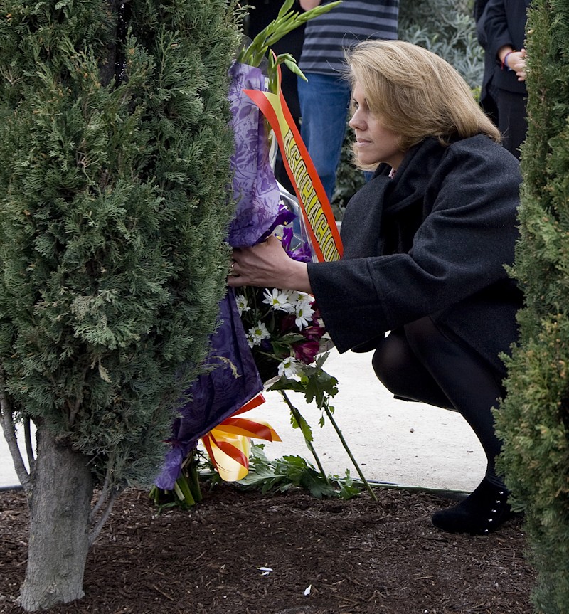 La Secretaria General del PP, Mª Dolores de Cospedal, deposita una corona en el homenaje a las víctimas