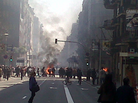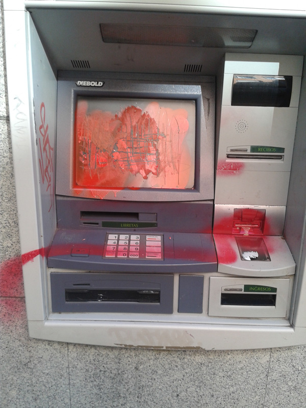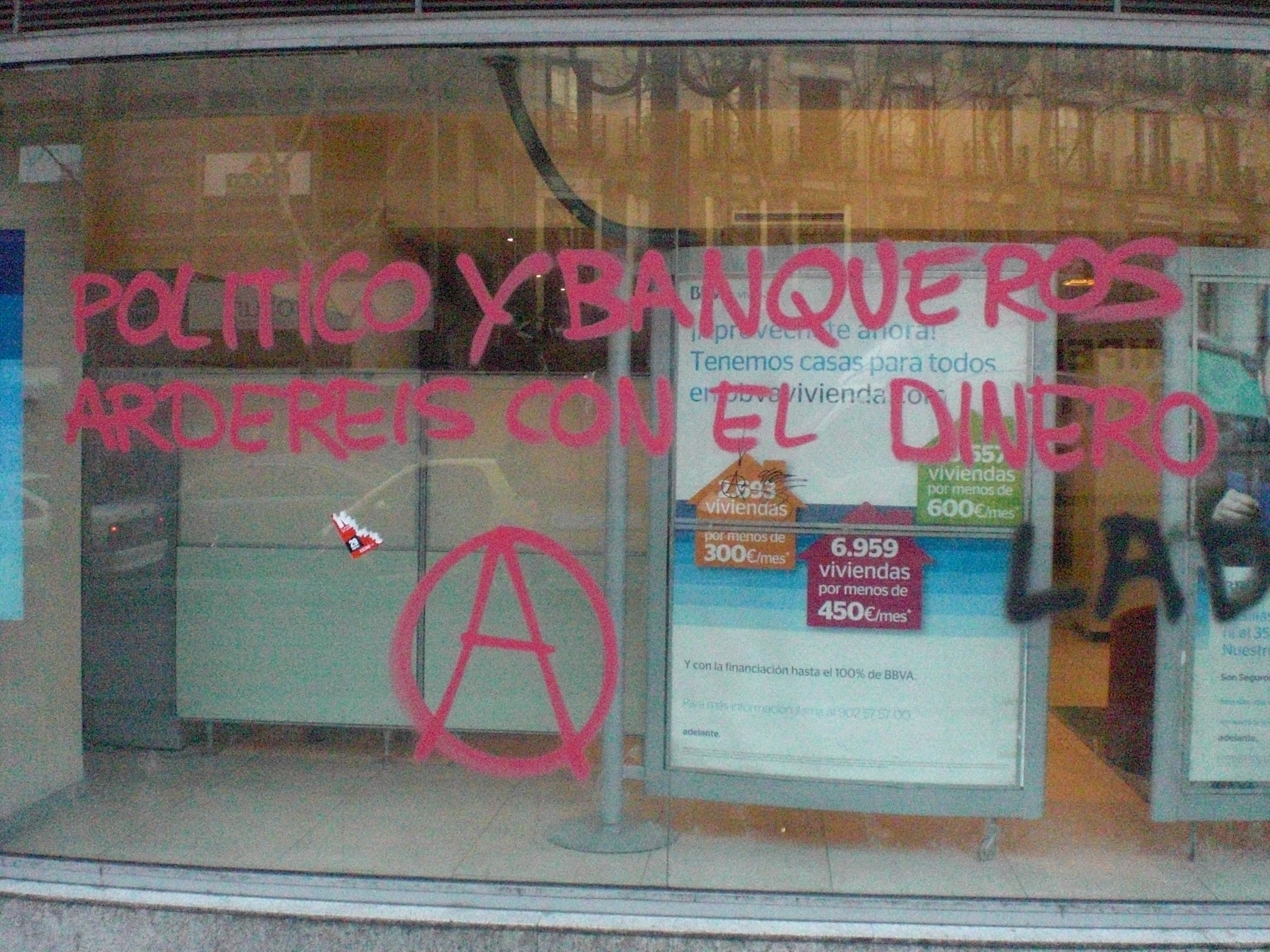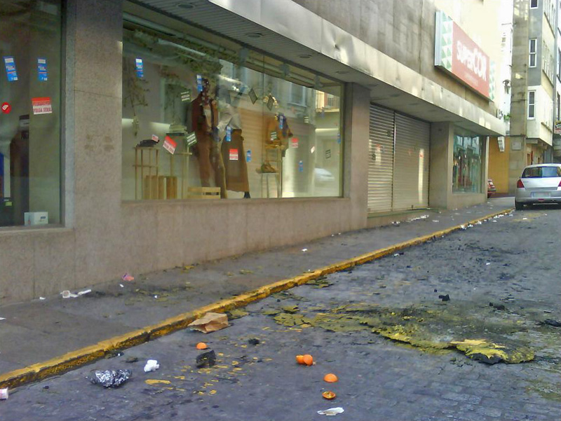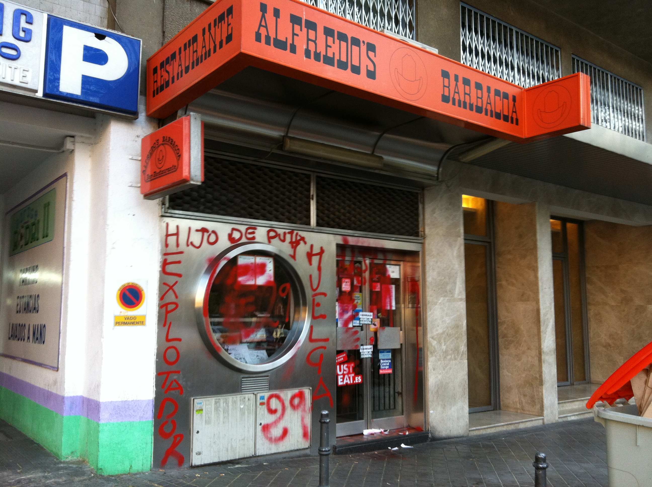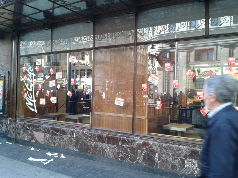 Fotos tomadas esta misma mañana en el centro de Madrid que reflejan someramente el efecto vandálico de esta noch.