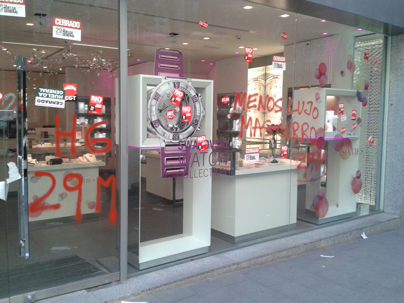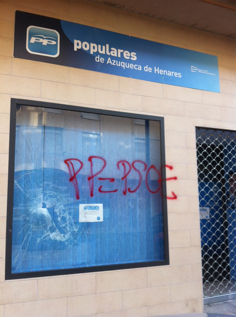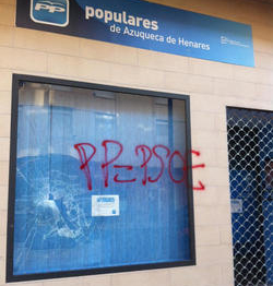 Os adjunto imagen de como amaneció la sede del PP de Azuqueca de Henares en Guadalajara tras la noche de Huelga General.