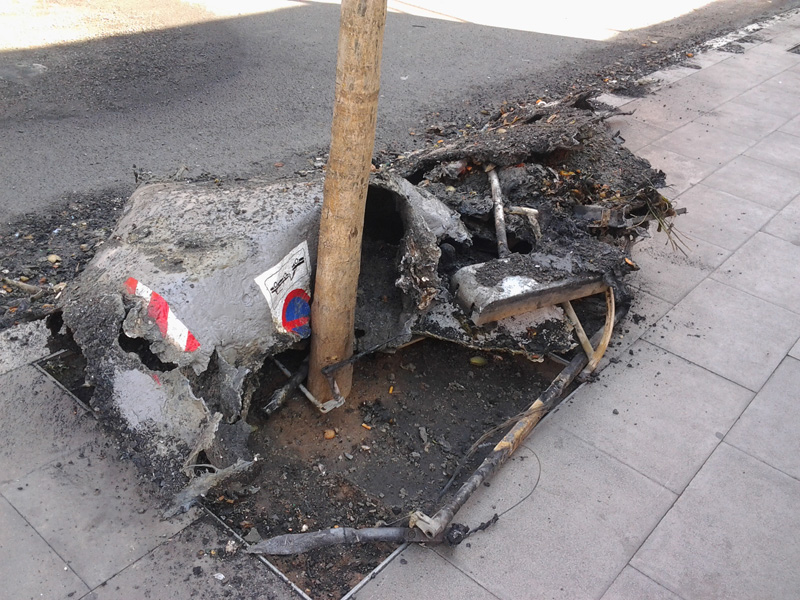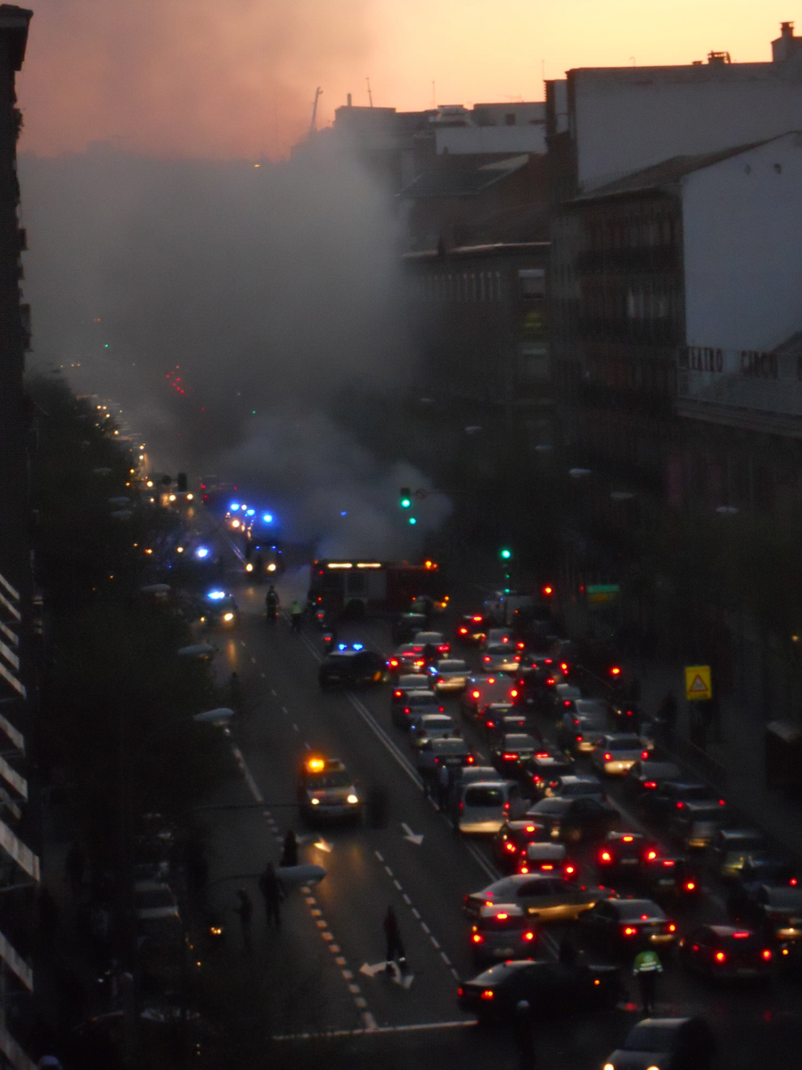 Esta mañana sobre las 8 han realizado fuego en la calzada. Como consecuencia de ello, corte de la Ronda de Atocha y tremendo accidente como se puede ver en las imágenes.