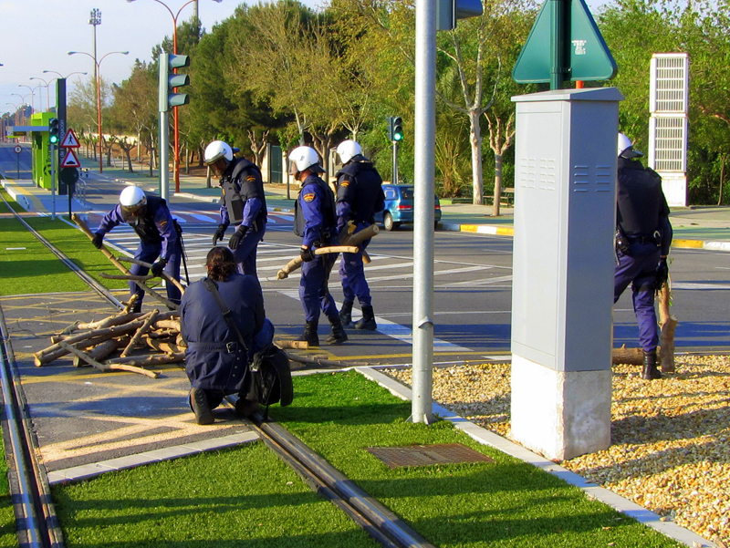 Antidisturbios retiran barreras, pero solo las de los palos.