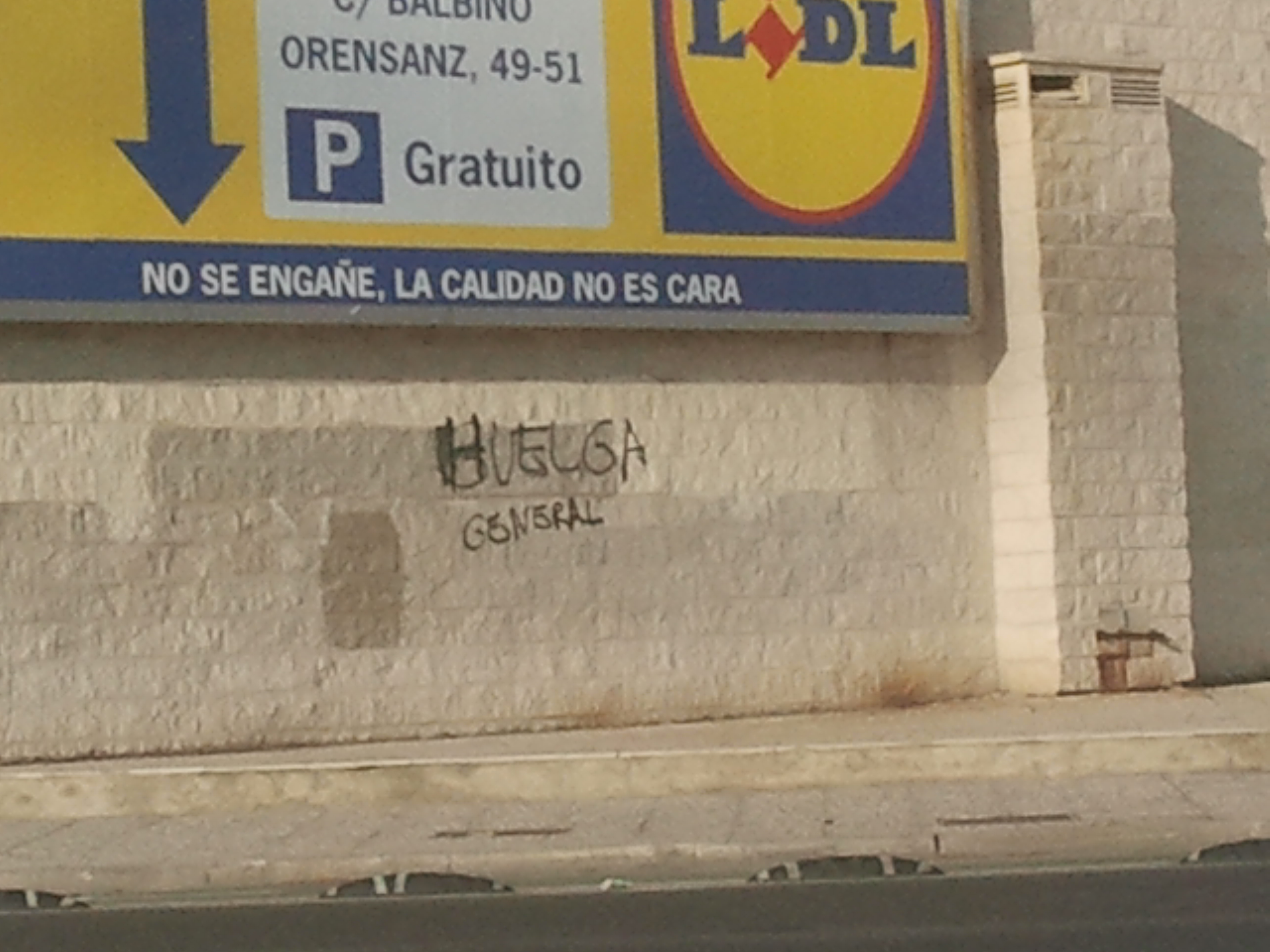Cartel que he visto esta mañana…en Zaragoza… Como podeís ver después de poner "GUELGA" pusieron la H encima.