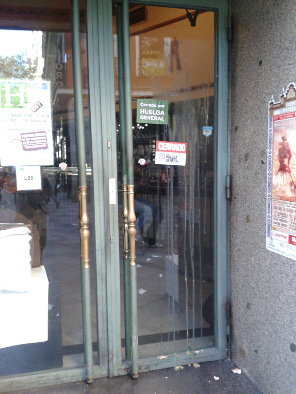 En Zamora, piqueteros de UGT y CCOO sitiaron un Mercadona por sus dos puertas de acceso impidiéndoles abrir.