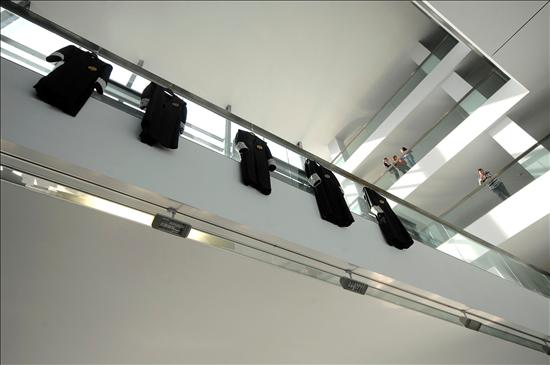 A modo de expresión de la protesta, han aparecido siete togas colgadas en la sala de entrada al edificio de los Juzgados de Ciudad Real, con motivo de la huelga de jueces y la "jornada de protesta". (EFE/Manuel Ruiz Toribio)