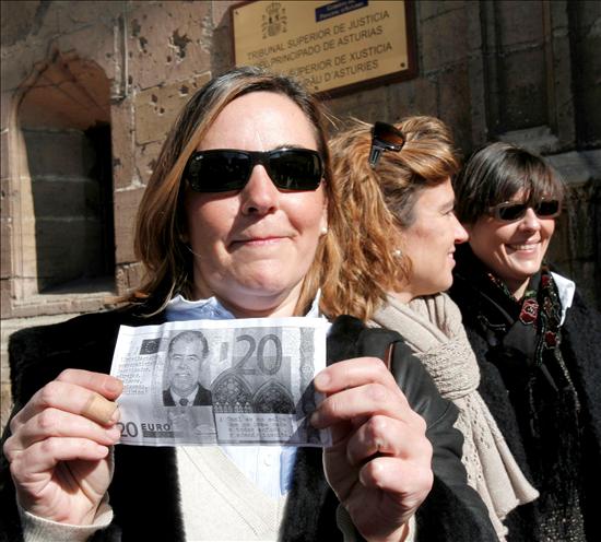 Treinta y un jueces asturianos, el 23 por ciento de la plantilla, ha secundado este miércoles la primera huelga convocada en toda España en demanda de mejoras estructurales en la administración de justicia. En la imagen concentración de jueces ante las puertas del Tribunal Superior de Justicia de Asturias. (EFE/J.L.Cereijido)