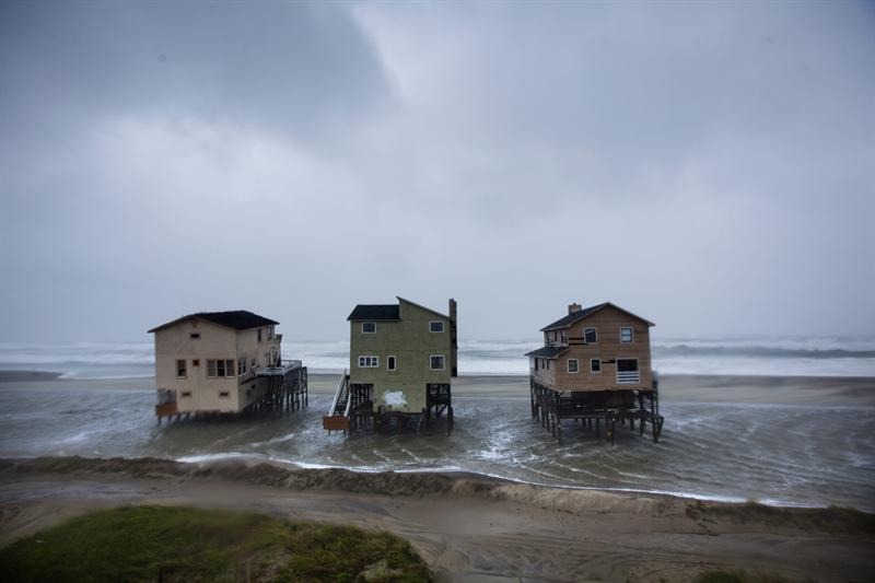 Unas casas sufren el azote del huracán "Irene" en Nags Head (Carolina del Norte.