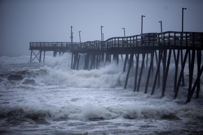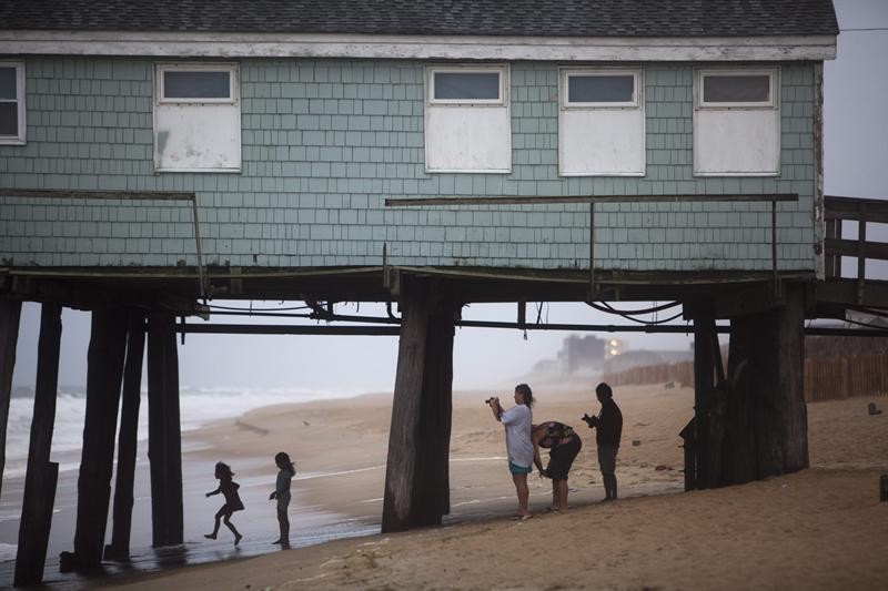 Turistas permanecen en la playa, mientras se acerca una tormenta con la llegada del huracán, a Kill Devil Hills, Carolina del Norte (EEUU). Efe/Jim Lo Scalzo