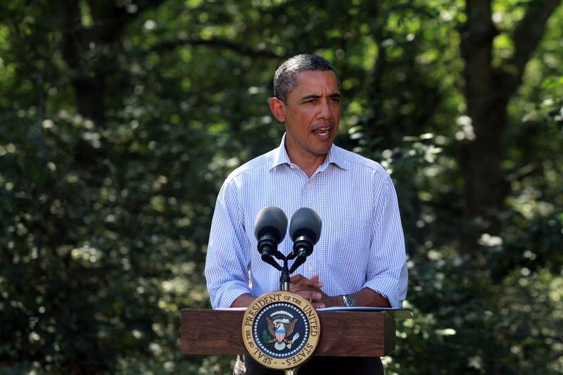 El presidente estadounidense realiza una declaración acerca del huracán Irene en su residencia de vacaciones, en Chilmark, Estado de Massachusetts, advirtiendo de la necesidad de las evacuaciones.
