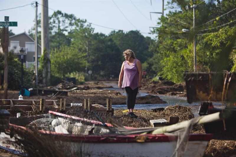En Outer Banks, una vecina observa los escombros a las afueras de su casa en Kitty Hawk, Carolina del Norte.