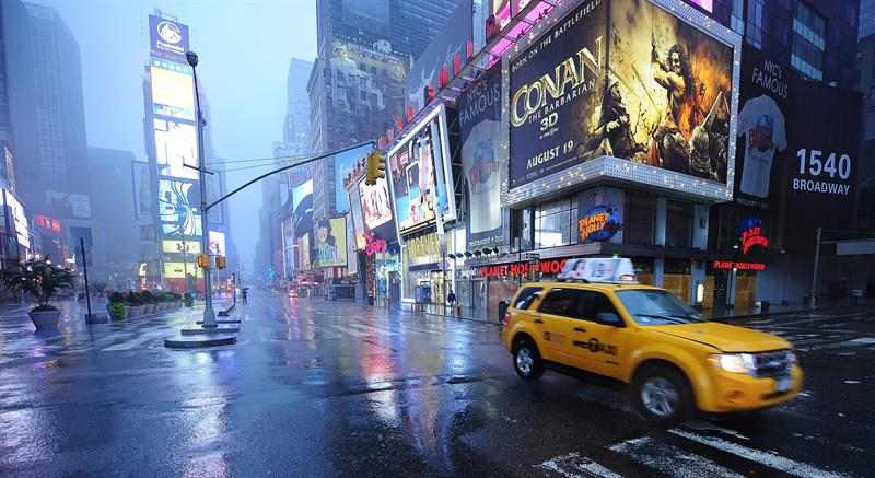La lluvia intensa cae sobre Times Square Nueva York (Estados Unidos).