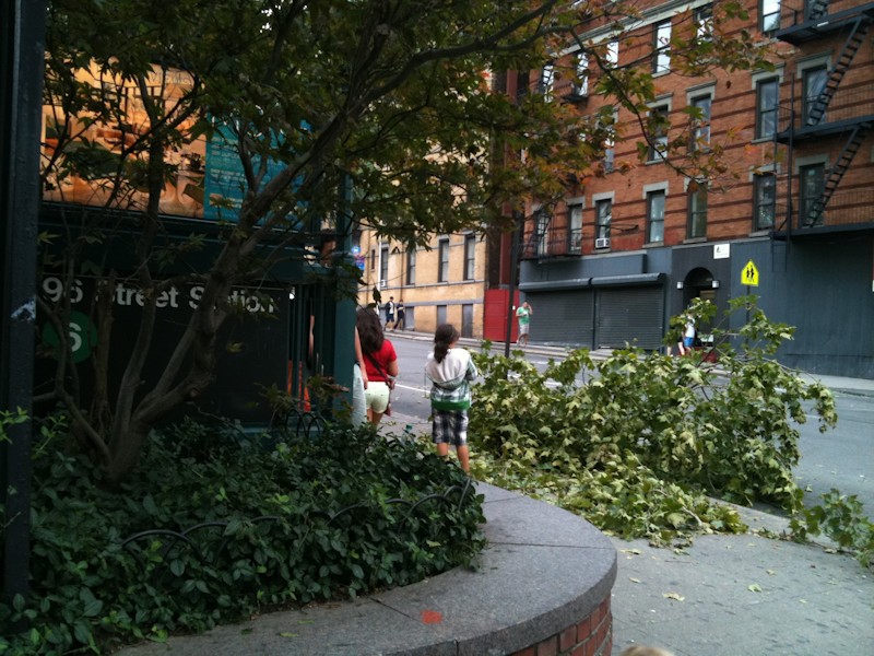 El paso del huracán Irene por Nueva York dejó ramas caídas en el cruce entre la 96 y Lexington