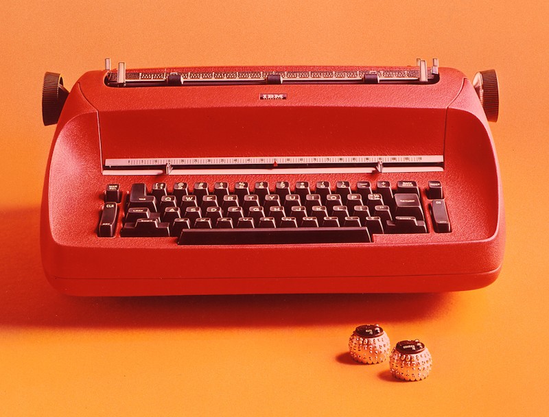En 1961 IBM lanza la máquina de escribir Selectric, referente de su mercado durante 25 años. Su inconfundible silueta y su color rojo forman parte del decorado de toda una época. Su peculiar modo de funcionamiento, que empleaba bolas en lugar del sistema tradicional, permitía emplear varias tipografías con una misma máquina.