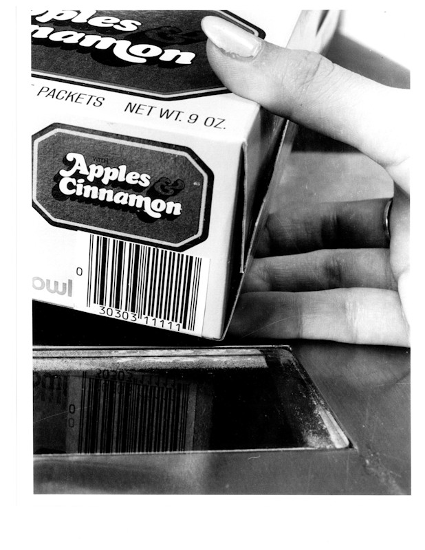 Los supermercados empiezan a escanear los códigos de barras, el sistema UPC inventado por IBM, en la década de los 60. En la imagen, un ejemplo de 1973.
