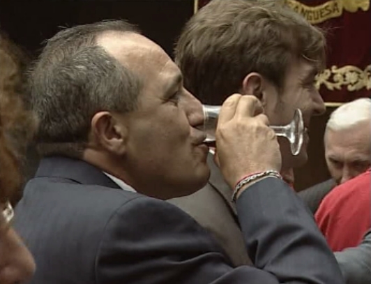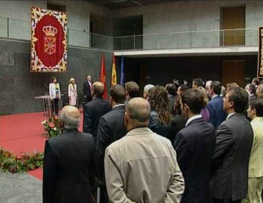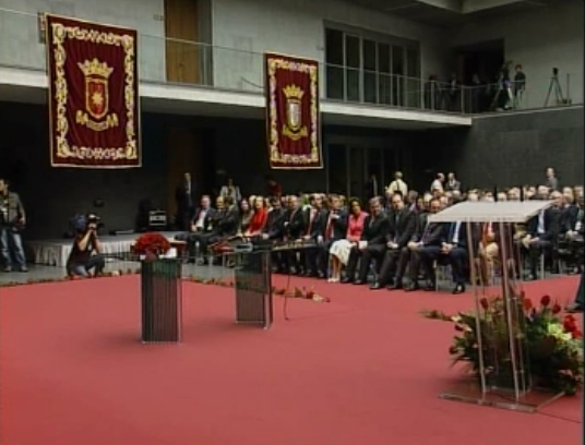 Detalle de la ceremonia de toma de posesión de la presidencia de Navarra por parte del líder de UPN, Miguel Sanz. (LDTV)