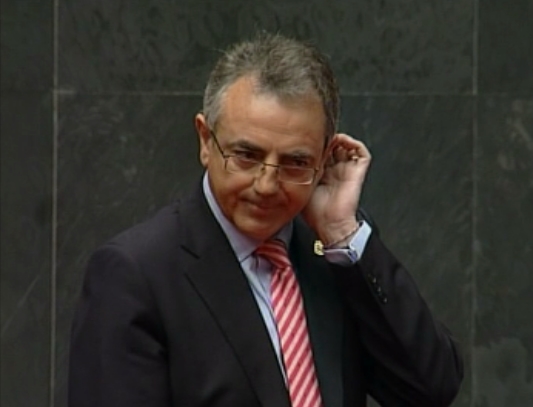 El líder de Nafarroa Bai en el Parlamento de Navarra, Patxi Zabaleta, tras la toma de posesión de Sanz como nuevo presidente de la Comunidad Foral. (LDTV)