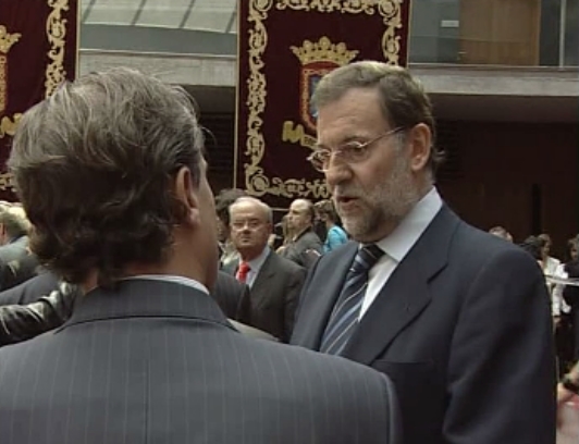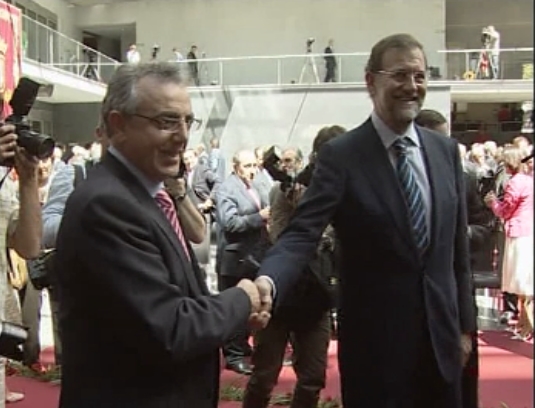 Saludo entre Miguel Sanz -recién nombrado presidente de Navarra- y el presidente del PP, Mariano Rajoy. (LDTV)