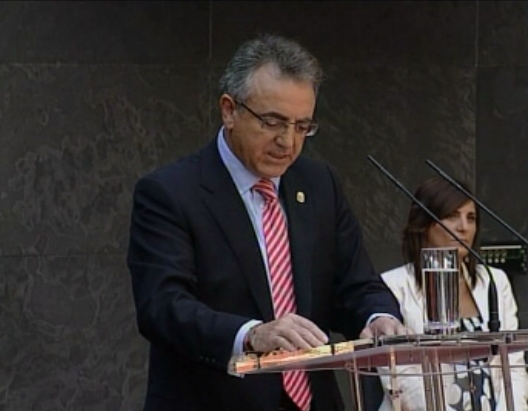 Miguel Sanz ha jurado su cargo, en el que se guiará por tres compromisos: "Fortalecer la cooperación con el PSN, combinar la continuidad de las políticas de su Gobierno anterior con la innovación, y respetar la pluralidad de Navarra". (LDTV)
