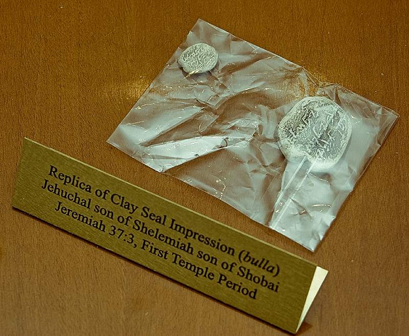 Sellos encontrados en Ir David con nombres de judíos de hace 3.000 años (réplicas).