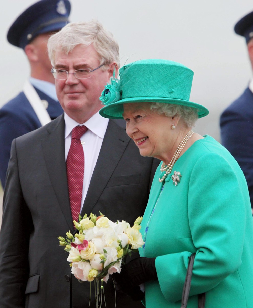 El viceprimer ministro irlanés, Eamon Gilmore, dio la bienvenida a la reina.