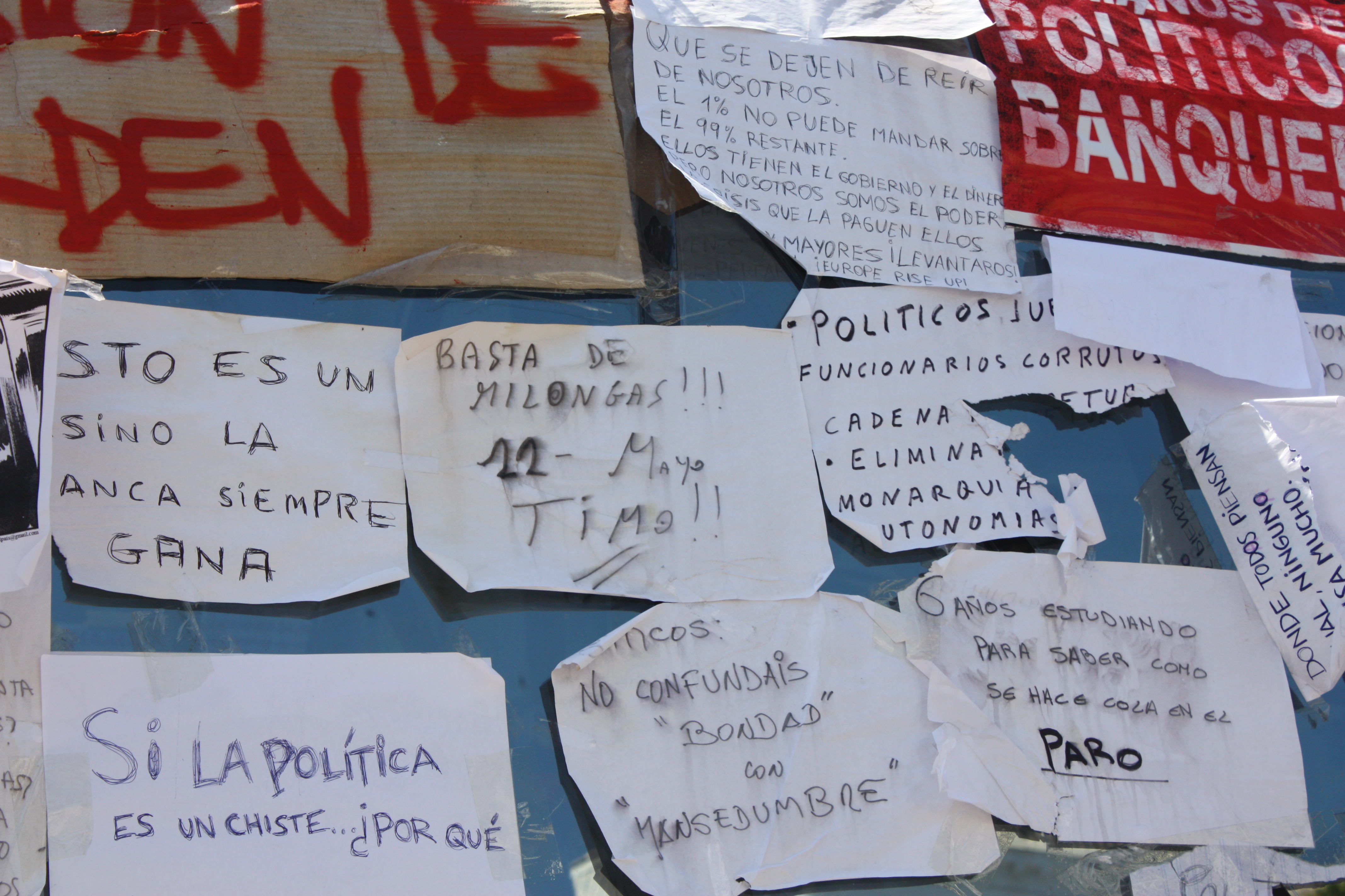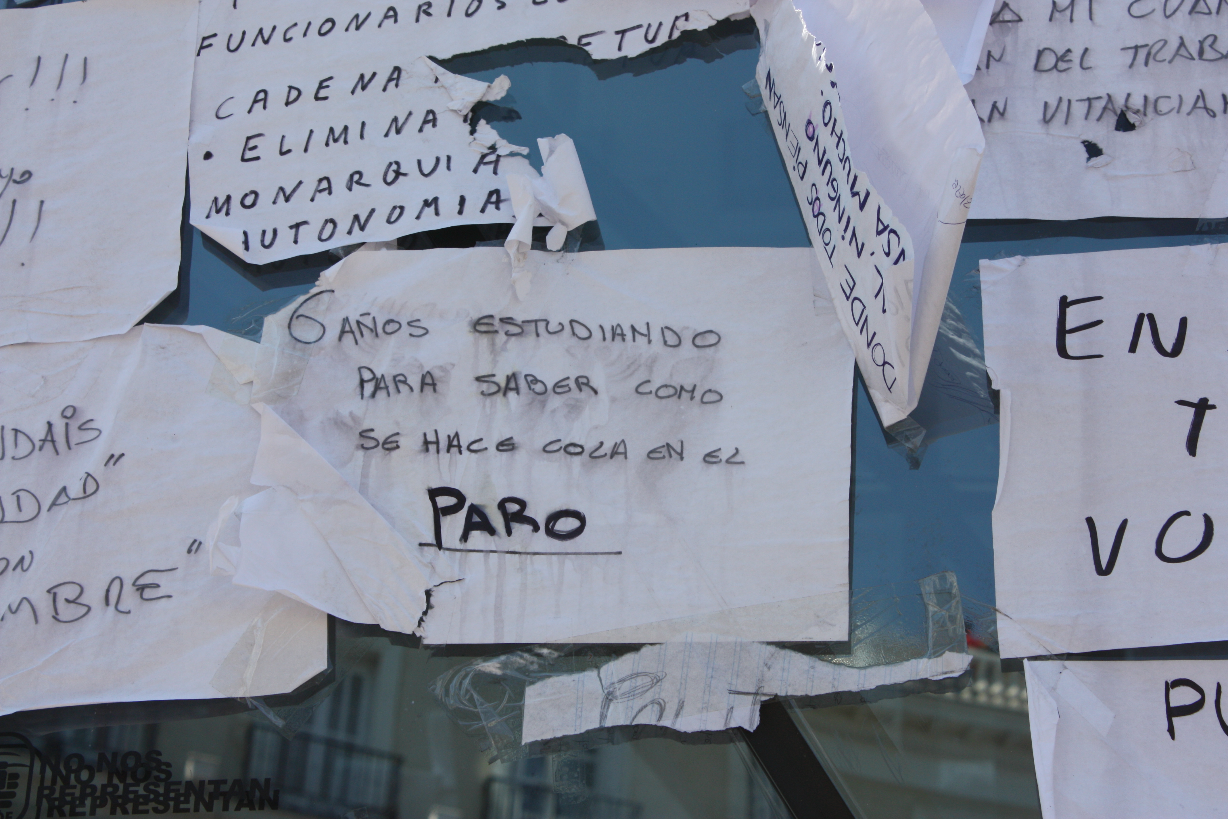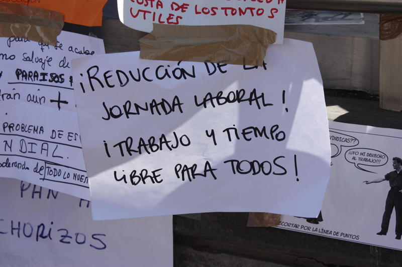En los carteles, los casi 5 millones de parados son una continua referencia.
