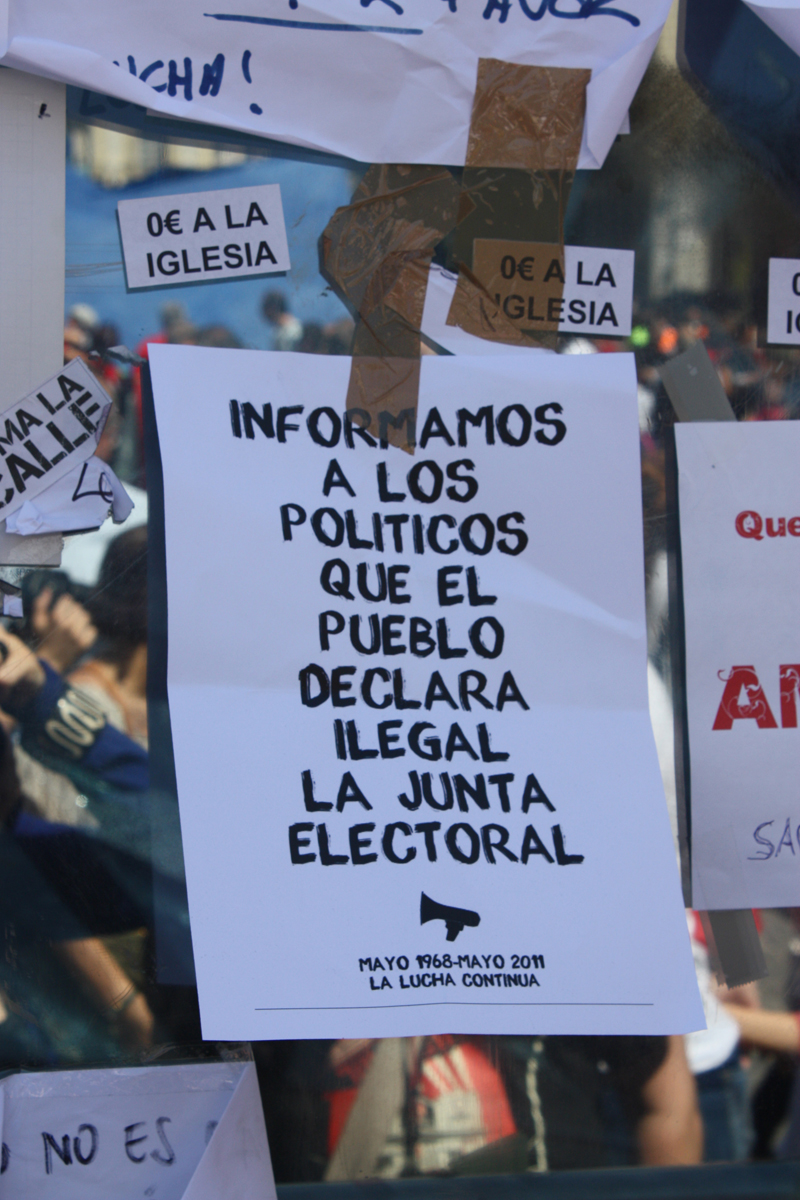 Los acampados del movimiento "Toma la plaza" permanecen en la Puerta del Sol de Madrid desafiando a la Junta Electoral.
