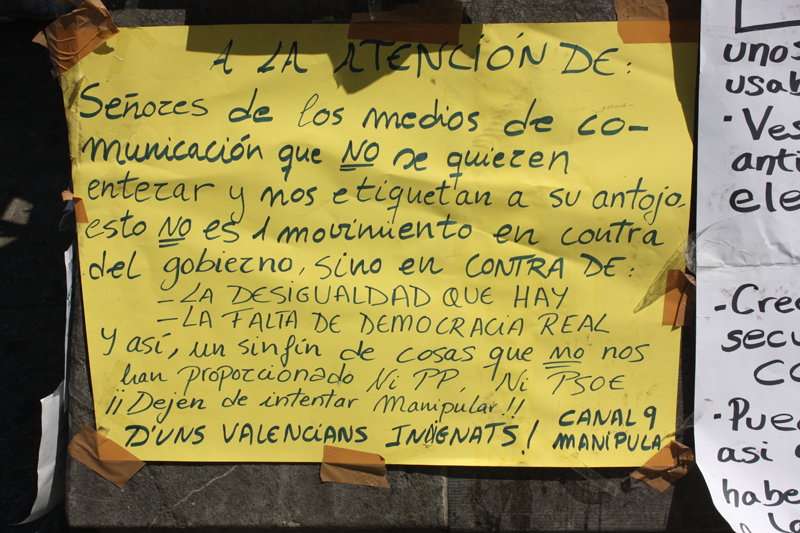 Los acampados no están contentos con la cobertura informativa que están dando los medios.