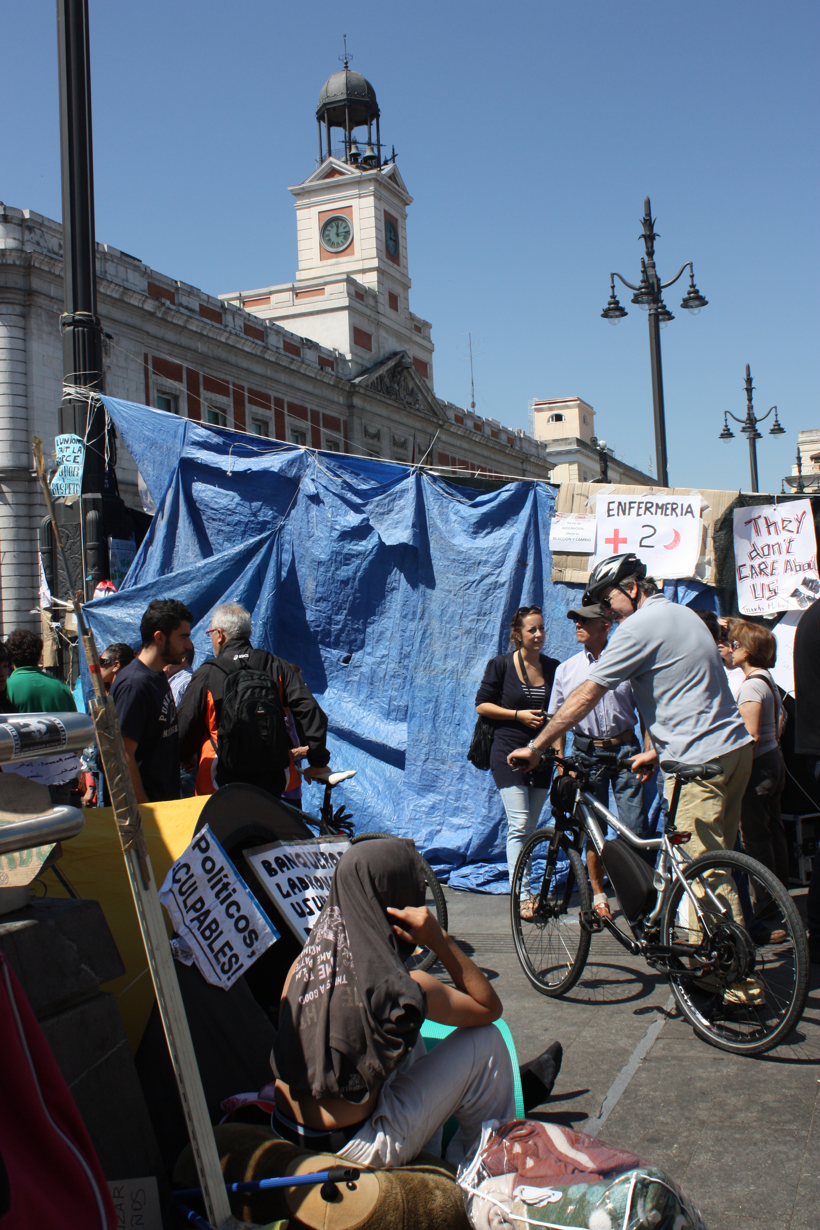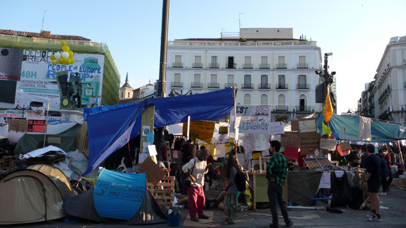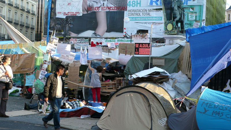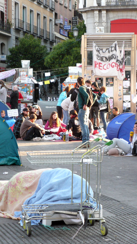 Apenas queda espacio para acampar en la Puerta del Sol de Madrid.