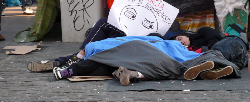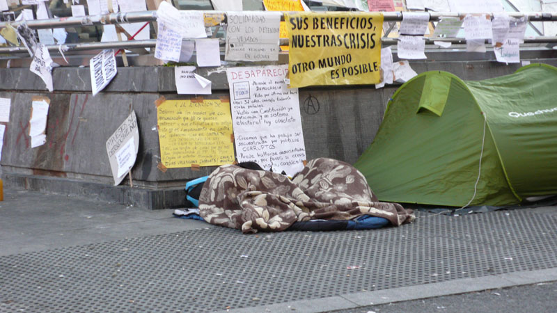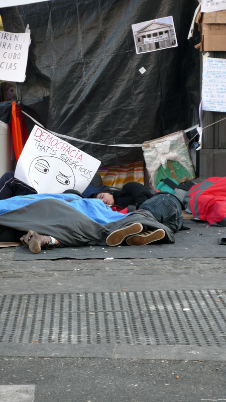 Poco antes de las 8 de la mañana la mayor parte de los manifestantes dormía a pierna suelta.
