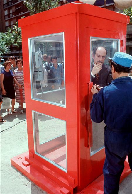 otografía de archivo del año 1972 del actor José Luis López Vázquez en una escena de la película "La cabina", realizada por Antonio Mercero, que grabó para TVE y que le valió el premio Fotogramas de Plata 1972.
