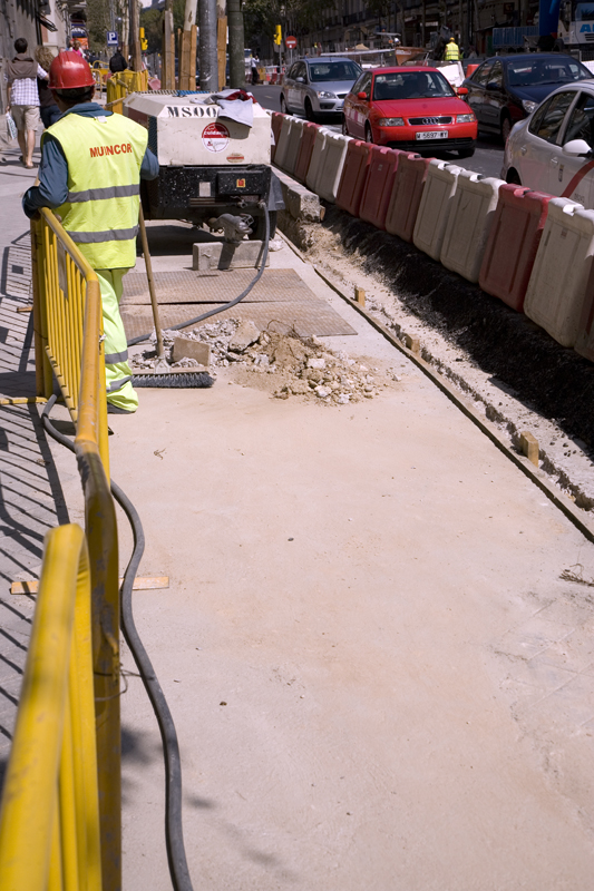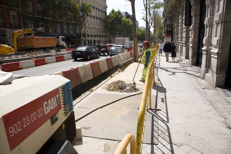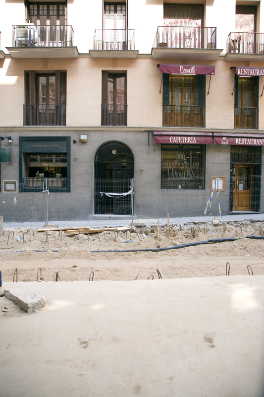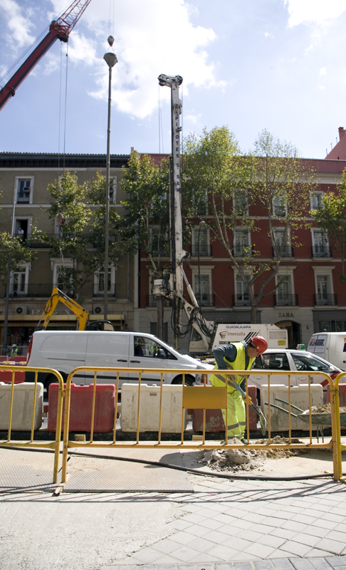El número 29 de la calle Serrano permanece asediado por las obras. Enfrente de este portal murió Arsenio Díaz.