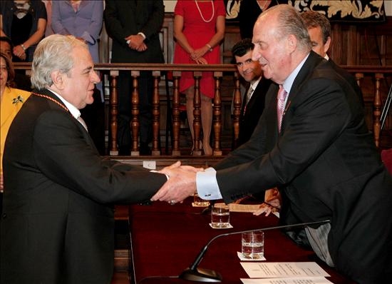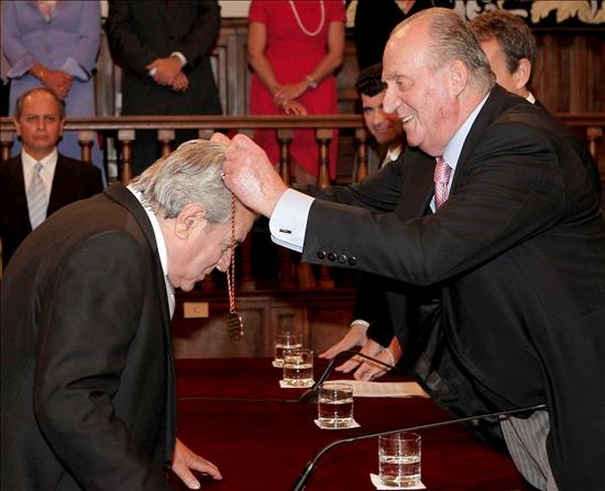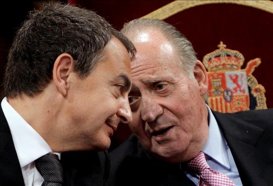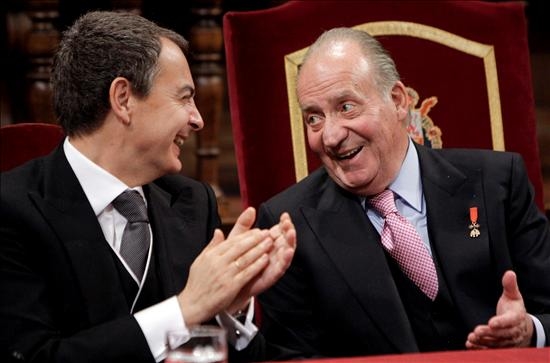 Zapatero y el Rey se ríen distendidamente durante la ceremonia en la que Marsé ha recibido el Premio Cervantes. (EFE)
