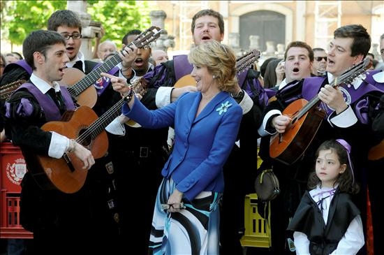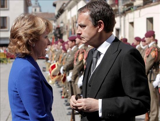 Con semblante serio, Zapatero conversa con Esperanza Aguirre. (EFE)
