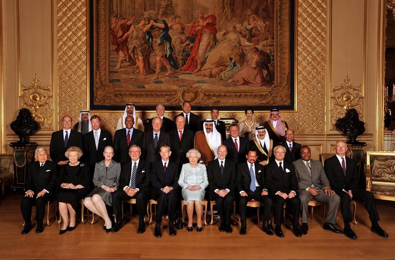 La reina Isabel II de Inglaterra posa con los invitados a su Jubileo de Diamantes, en el castillo de Windsor.