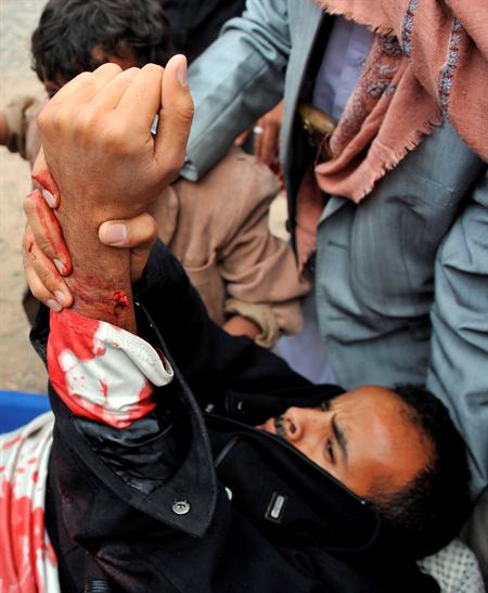 Un manifestante muestra sus heridas en Saná