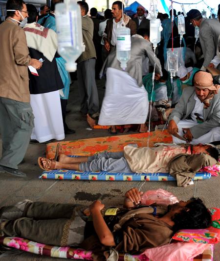 Los yemeníes montaron hospitales de campaña para atender a los heridos