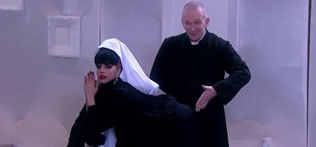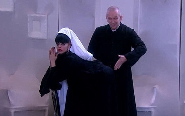 La última provocación de la cantante ha sido disfrazarse de monja para ser azotada por Jean Paul Gaultier vestido de cura. Así aparecen en las imágenes promocionales de una entrevista que se emitirá en septiembre.