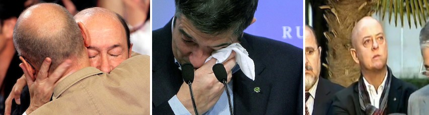 La euforia socialista por el comunicado de ETA se ha expresado en llantos de emoción durante el mitin de este sábado en San Sebastián. Las lágrimas de Odón, Patxi López y Rubalcaba no han sido las únicas. Francino en la Ser, Zapatero, o José María Calleja también se vieron superados por la emoción.