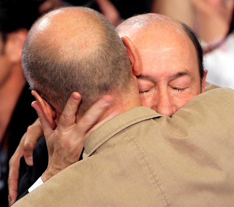 El que fuera alcalde de San Sebastián, Odón Elorza, no pudo reprimir las lágrimas durante un acto en Vitoria el pasado viernes. A su lado, Eduardo Madina también se muestra visiblemente compungido.